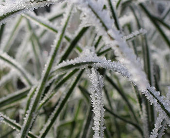 Als het vriest en er ligt een wit laagje op je gazon, loop er dan niet op. De sprieten kneuzen, en